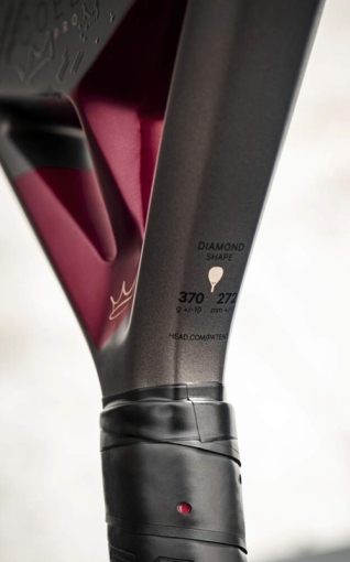 Diamantový tvar posouvá sweet spot výše do hlavy rakety, což umožňuje větší páku a sílu úderu. Tento design: