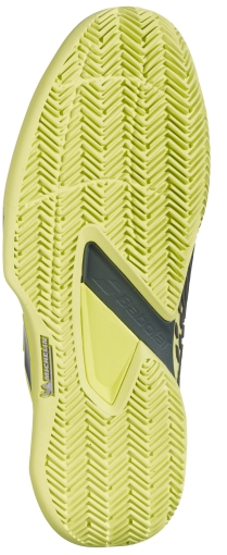 Speciální podrážka se vzorem rybí kosti je navržena pro optimální výkon na antukových površích a kurtech s vysokým podílem granulátu. Zajišťuje precizní rovnováhu mezi nutnou trakcí pro start na míč a kontrolovanou kluzností, kterou potřebujete při defenzivních skluzech.