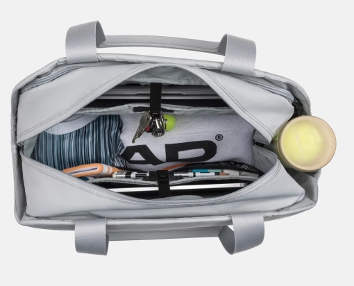 Taška hravě pojme jednu tenisovou raketu a díky polstrovaným přihrádkám bezpečně ochrání i váš notebook nebo iPad. Promyšlený interiér doplňují síťované kapsy a vnější oddíly pro rychlý přístup k telefonu a doplňkům. S důrazem na udržitelnost je tento model dodáván v ekologickém balení z recyklovaných materiálů.
