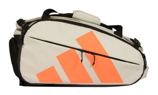 ADIDAS Racket Bag Multigame 2026 Offwhite/Orange je univerzální padelová taška, navržená tak, aby pojala více raket a veškeré vybavení, ideální pro hráče, kteří často trénují, hrají zápasy nebo cestují mezi kurty. Spojuje sportovní design s praktickou funkcí a nabízí dostatek prostoru a organizaci pro vybavení i osobní věci.