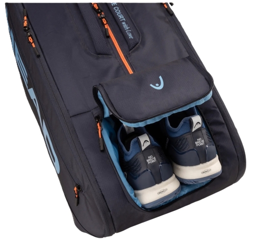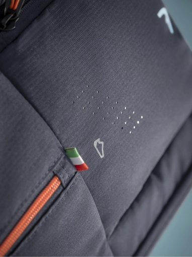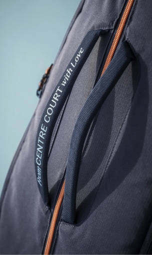 Tato prémiová taška v elegantní námořnické modré (národní barvě Itálie) v sobě snoubí špičkovou funkčnost s detaily, které vyprávějí příběh jednoho z nejlepších hráčů světa. Designu vévodí oranžové zipy, které odkazují na Jannikovy zrzavé vlasy, a osobní logo "Fox" – důmyslná kombinace iniciál J, S a hory, tvořící hlavu lišky. Celý design doplňuje vzkaz „Z Centr kurtu s láskou“ a hravý motiv lišek v podšívce.