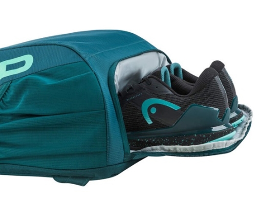 Praktické doplňky: samostatná kapsa na boty, dvě vnější kapsy jsou ideální pro láhve s pitím nebo dózy s míči, takže máte hydrataci i vybavení ihned po ruce.